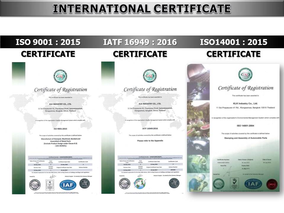 - Sep 2001 : KLK Achieved QS-9000 / ISO 9002 : 1994 certification.